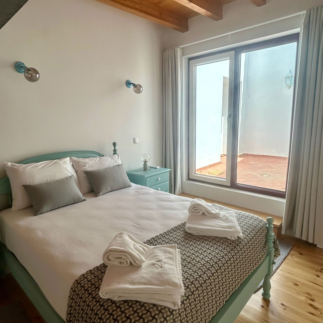 Esta pequena casa disponibiliza todo o conforto e comodidade numa área de 50m2. Voltada para o Coreto e para o Largo da Vila, a casa estende-se por uma sala comum com kitchenette e casa de banho e uma suite em mezzanine.